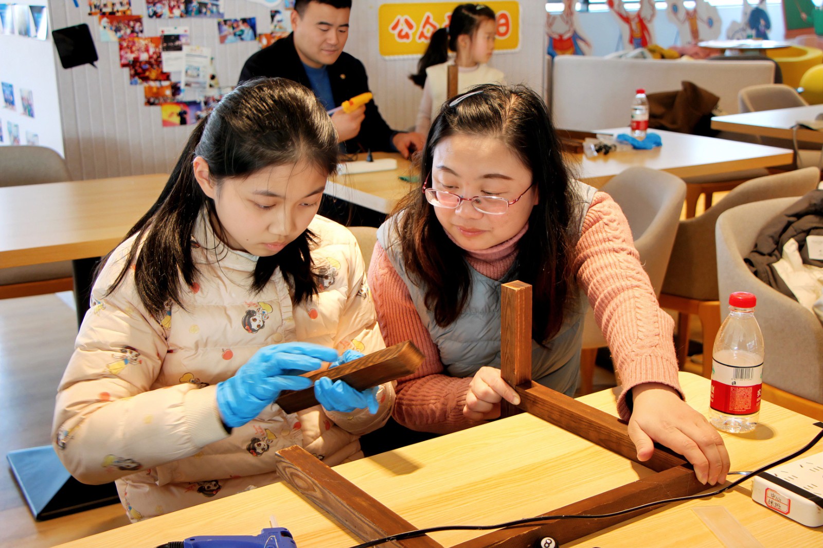 短暫午休之后,我們開(kāi)始了最精彩的部分——親子科學(xué)手工小課堂,以家庭為單位制作蛇年科學(xué)手工展品——蛇形擺。